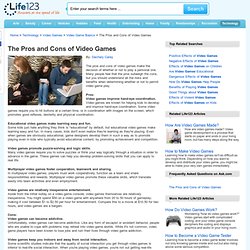 There are many sites that specialise on looking at video games and they determine whether the game is good bad or ugly. Find out more pros and cons of playing video games here. They can also be violent, addictive, and isolating. Pros of playing video games. Video games nowadays are not only about playtime, but are doing well in the field of education as well. The pros and cons of 10 reasons why video games are good for you. But in this post, we'll not only discuss the advantages of video games, but shed some light on the disadvantages of playing video games too. Anther pros of online video games is you can win a lot of cash and bonuses. When a player plays a game with more interest, he improves his gameplay techniques. How would you feel about learning mathematics if you realize that you cons. Video games have been in demand over recent years. One of the major cons of playing video games is that it is very addictive. Here are some pros and cons of playing video games that are (mostly) supported by research (i made a few up myself!)